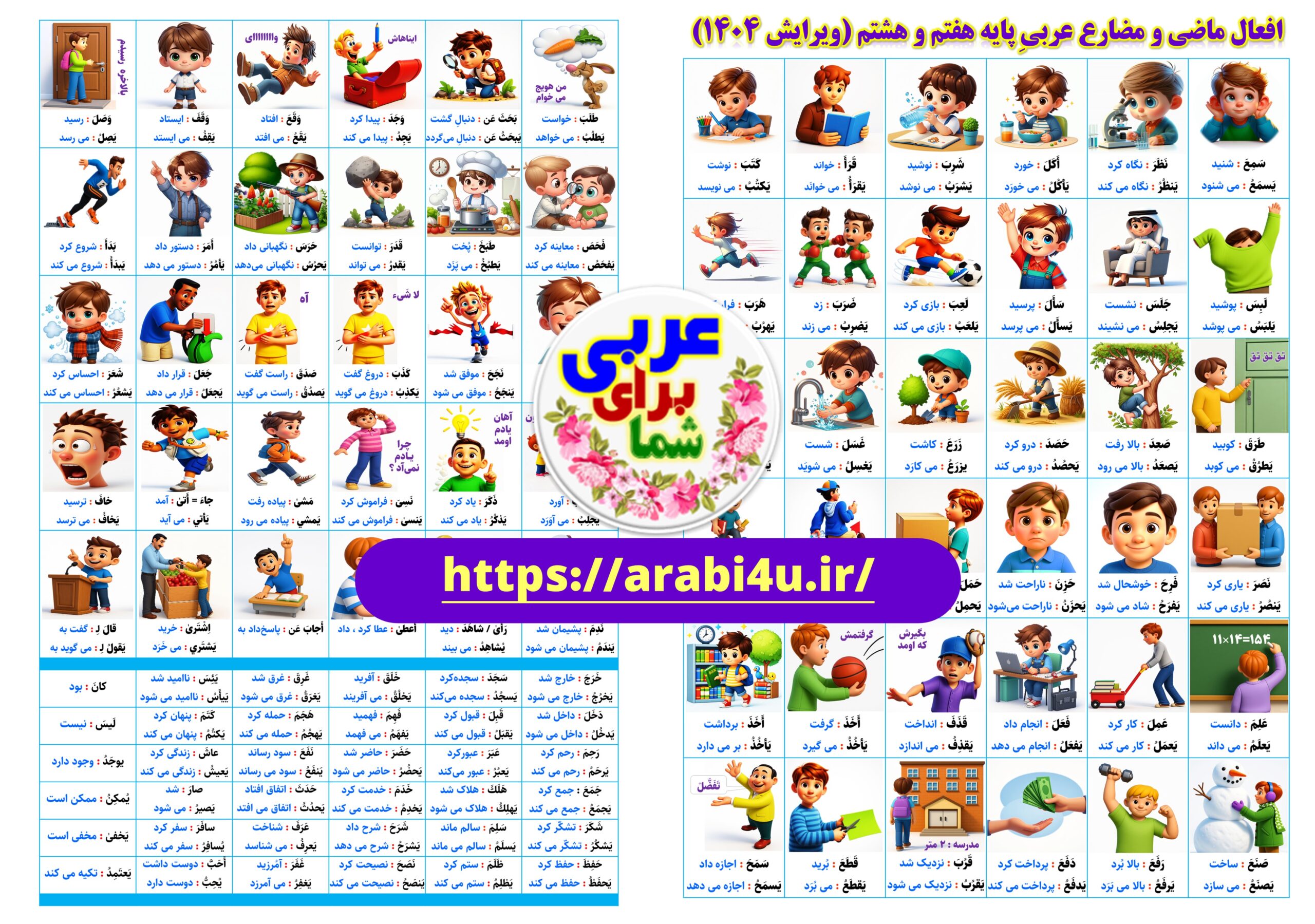 💢 در این برگه بیش از ۱۰۰ فعل عربی هفتم و هشتم وجود دارد :