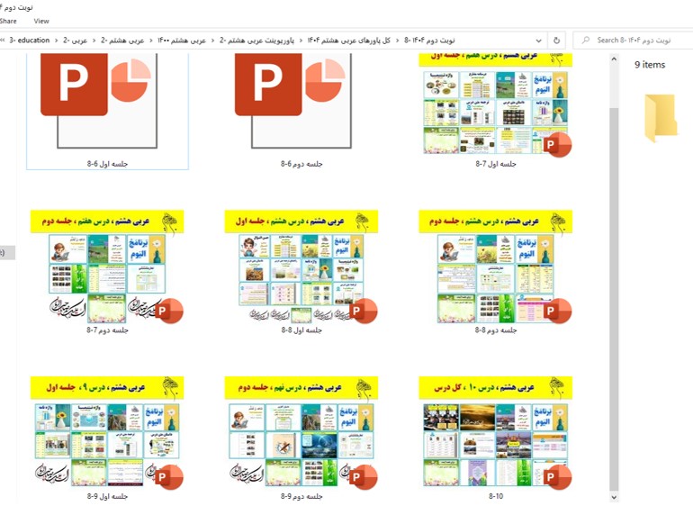 کل پاورپوینت های نوبت دوم عربی هشتم ویرایش ۱۴۰۴ (۹ پاورپوینت)
